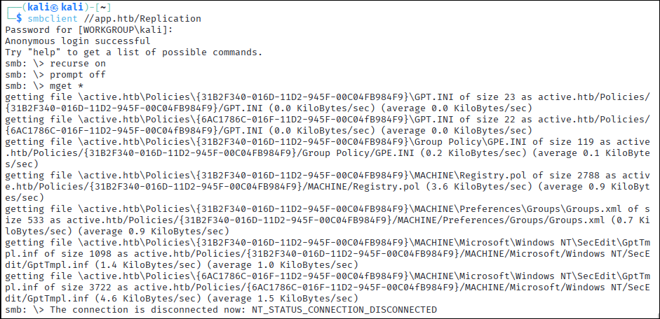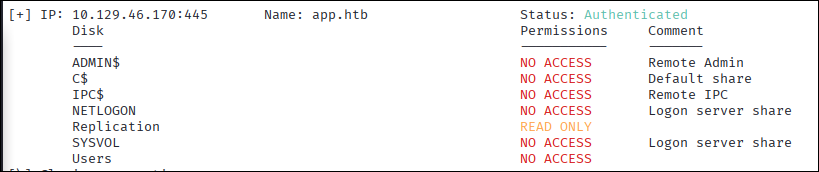smbclient //app.htb/Replication#smbrecurse onprompt offmget **