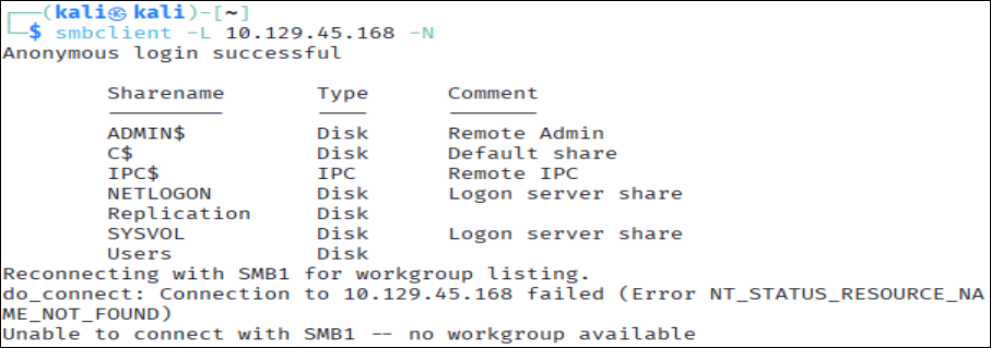 smbclient -L 10.129.45.168 -N