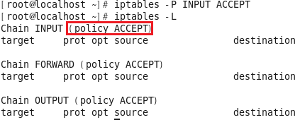 기본 정책은 ACCEPT 또는 DROP이 있다.